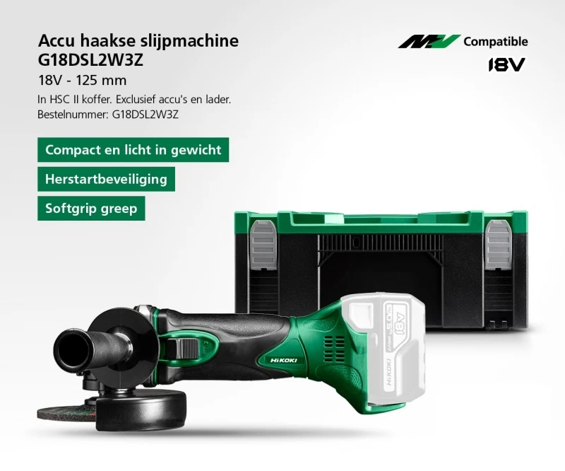 ![HiKOKI G18DSL2W3Z Haakse Slijpmachine | 125 Mm | 18 Volt | Basic | +Systainer [G18DSL2W3Z] 2 HiKOKI G18DSL2W3Z Haakse Slijpmachine | 125 Mm | 18 Volt | Basic | +Systainer [G18DSL2W3Z] - Image 2](https://www.toolsxlhikoki.com/wp-content/uploads/2025/01/HiKOKI_G18DSL2W3Z_G18DSL2W3Z_ext_2.webp)