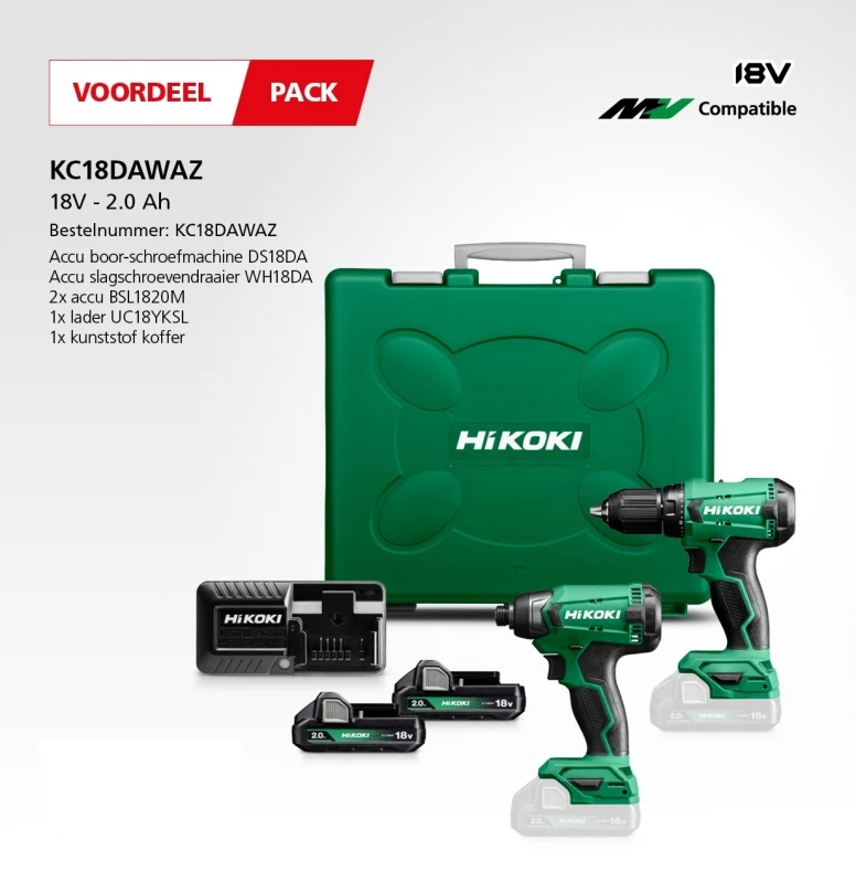 ![HiKOKI KC18DAWAZ Boormachine + Slagschroevendraaier | 2x18V 2,0Ah | +Koffer [KC18DAWAZ] 2 HiKOKI KC18DAWAZ Boormachine + Slagschroevendraaier | 2x18V 2,0Ah | +Koffer [KC18DAWAZ] - Image 2](https://www.toolsxlhikoki.com/wp-content/uploads/2025/01/HiKOKI_KC18DAWAZ_KC18DAWAZ_ext_2.webp)