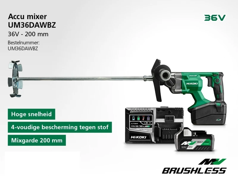 HiKOKI UM36DAWBZ Accu Mixer | 36 Volt MultiVolt 2.5 Ah | +Lader